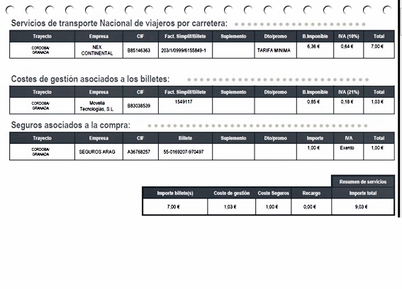 実際に購入したコルドバ―グラナダ間のバスチケットの価格(旅の2か月前に購入)
