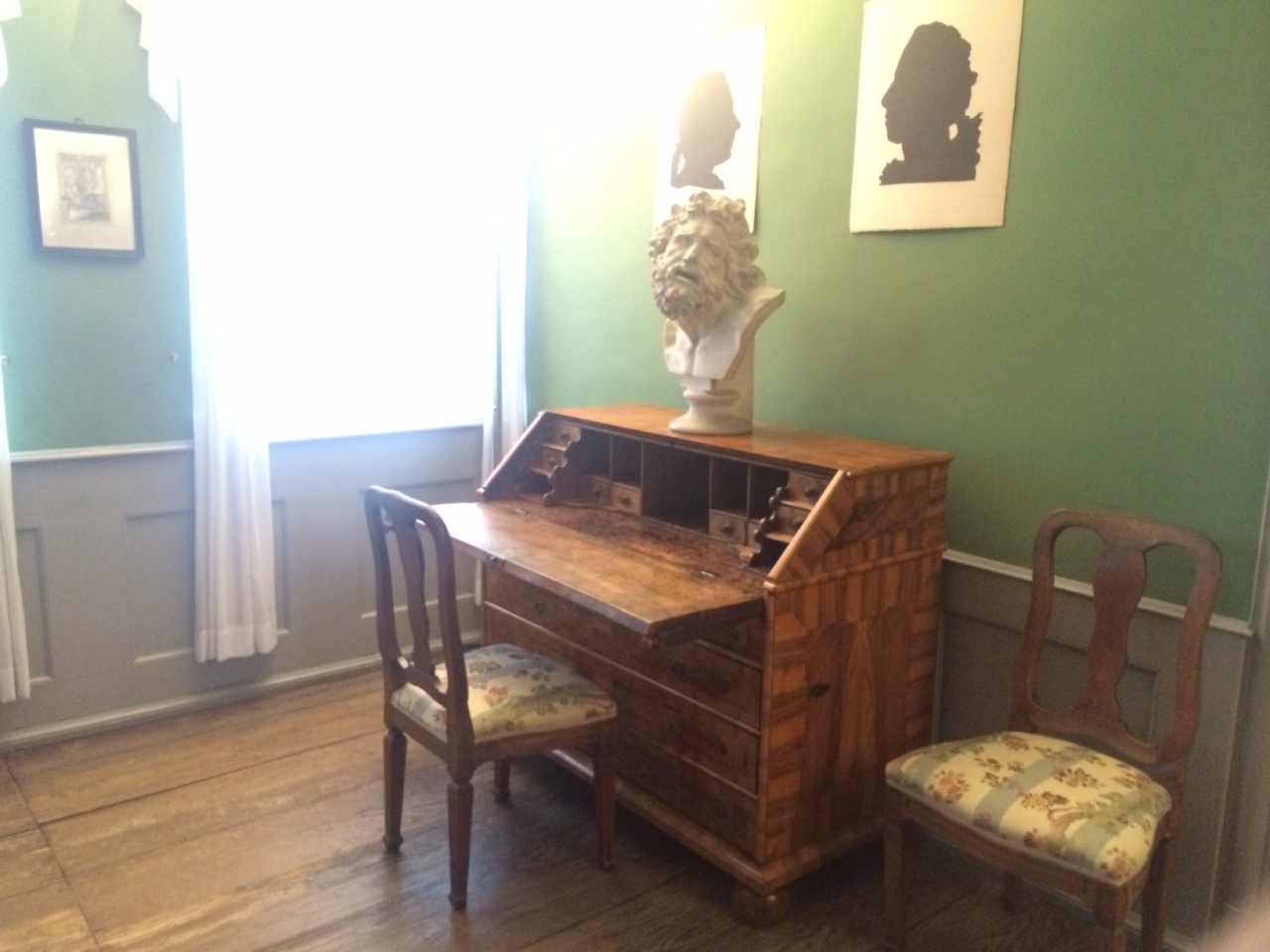 ゲーテの生家と博物館の建物が隣り合わせ、生家は4階建てで応接間、両親の部屋、ゲーテの部屋が整然とされています。彼の父の部屋には絵画が所狭しと壁に掛かり感性の