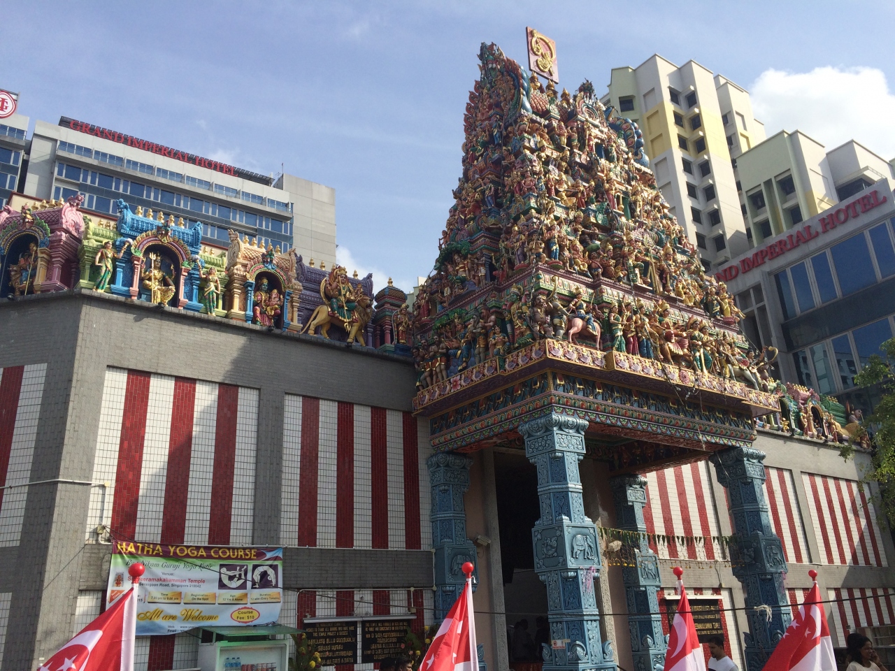 MRTリトル・インディア駅から歩いて7~8分のところにある、18メートルの高さを誇るゴープラムが印象的なヒンドゥー教寺院です。シヴァ神の奥さんカーリーを祀っているそうです。観光客も靴を脱いで中に入ることができるのですが、私が訪れた時は儀式が行われており信者の方でいっぱいでしたので、入るのを遠慮しました。
