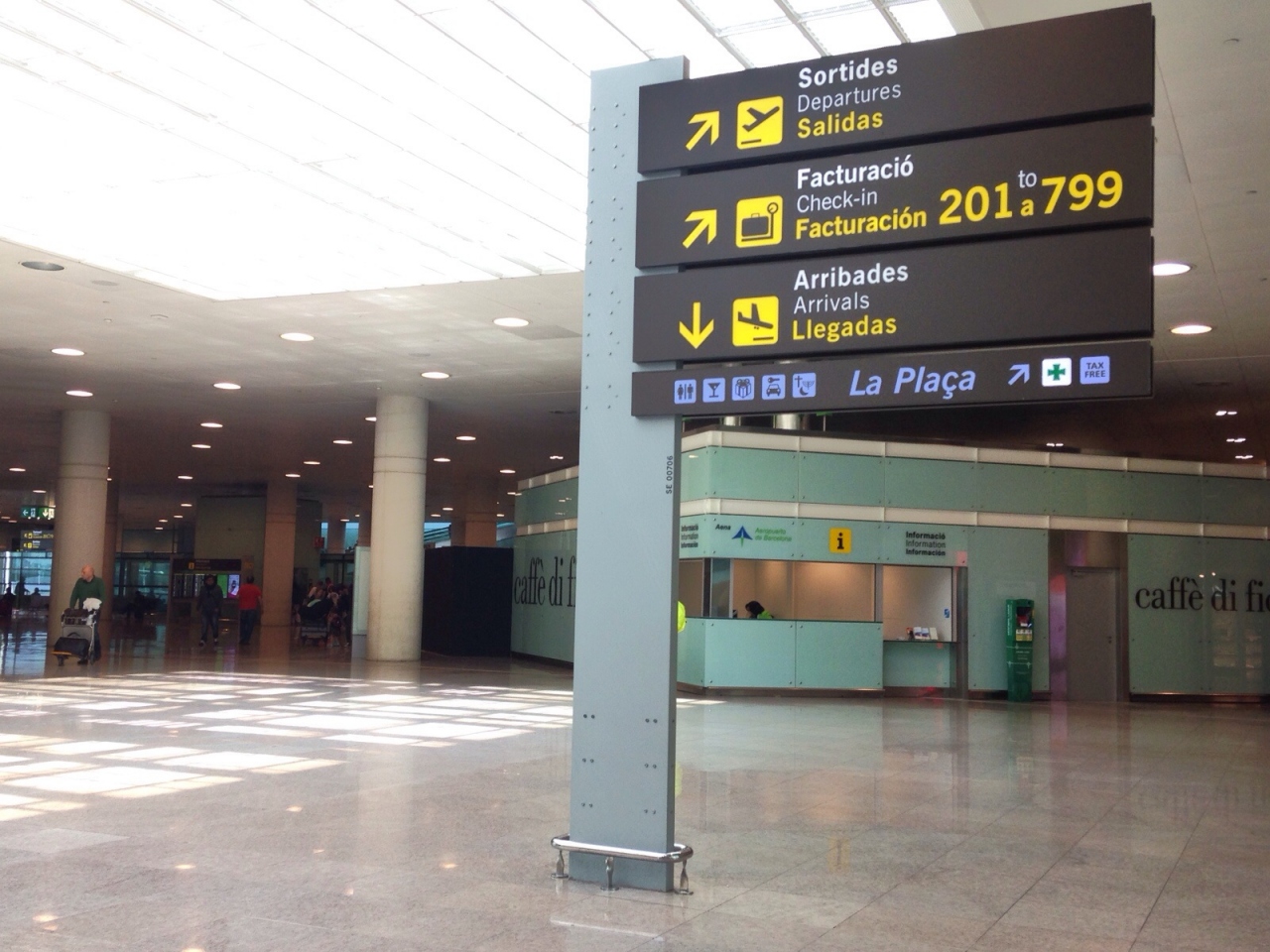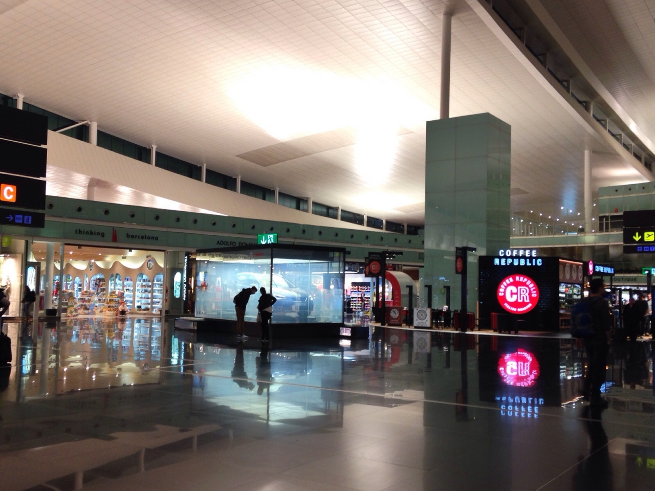 バルセロナの空の玄関、エル・プラット空港。サイズ感も地方空港とは思えないくらいで、ガラス張りの美しい空港。