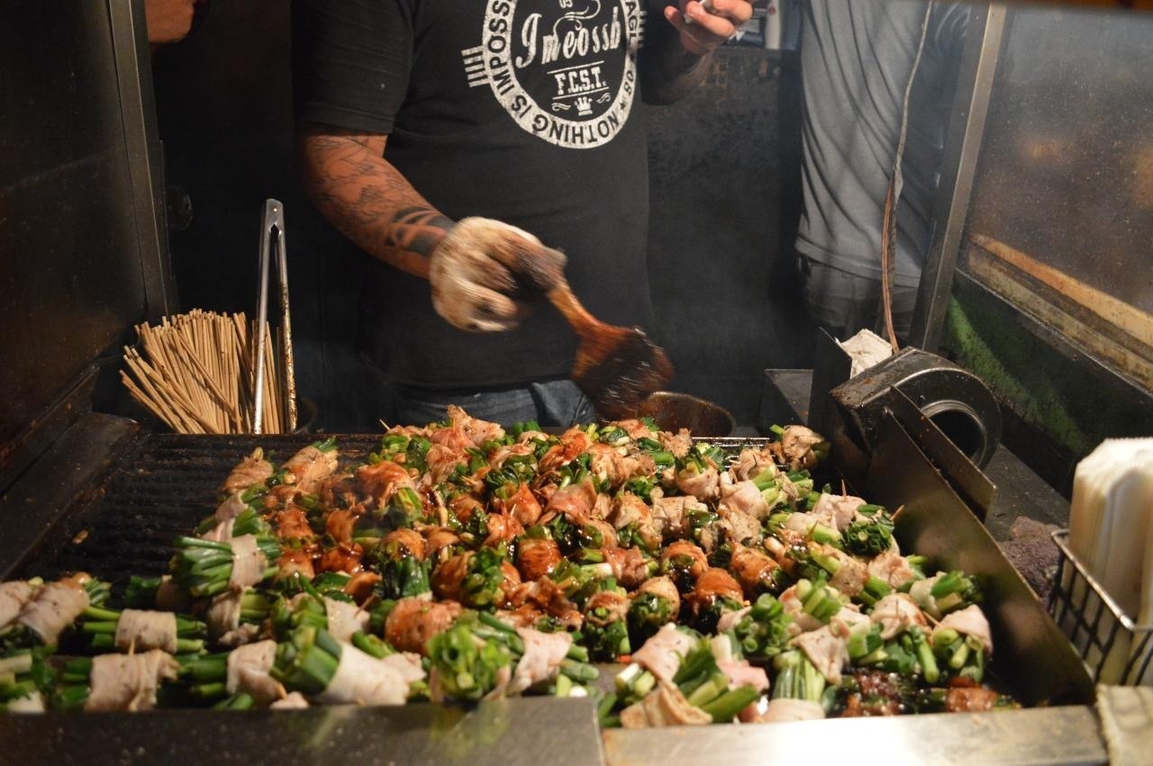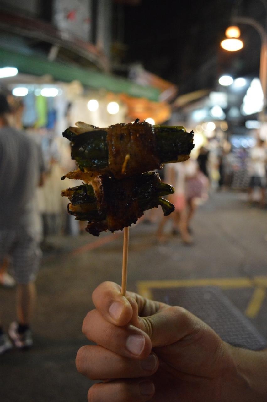 他には地下食堂ではない場所にも食べ物の屋台が立ち並んでいるところがあり、長ネギを薄い肉で巻いたものが美味しかったです。
