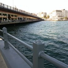 橋の下のレストラン街というか、レストラン街がある建物の上に道路があって、トラムが走っている。