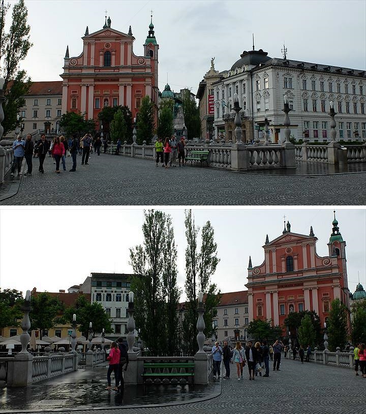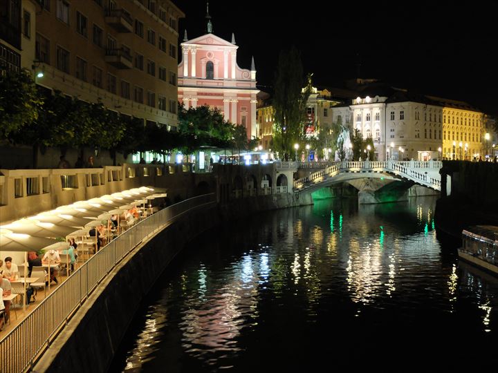 その広場前のリュブリャニツァ川に架かる三つの橋が、見所のひとつになっている三本橋トロモストウイエ。