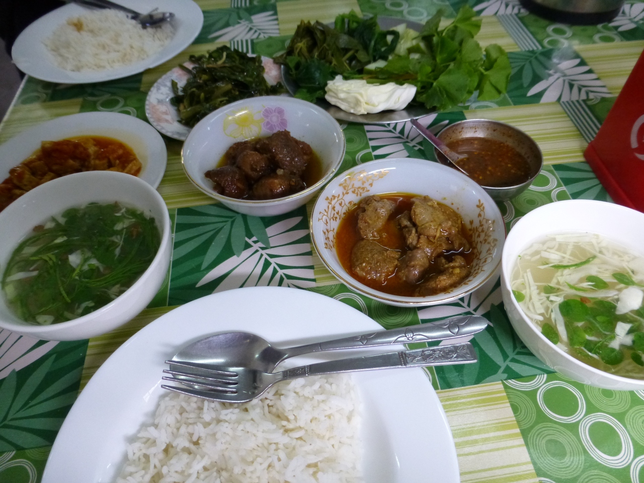 店内は地元の人で混み合っていて、広いテーブルで相席でした。
