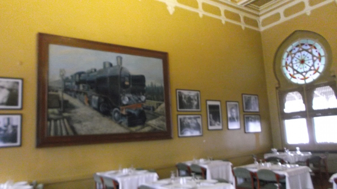 その駅のレトロな駅舎を利用した、レストランです。 アガサクリスティの写真や、あと、当時をしのばせる写真が飾ってありました。
