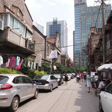 家から突き出た物干しざおや、路地で遊ぶ子供らなど生活を垣間見ることができます。