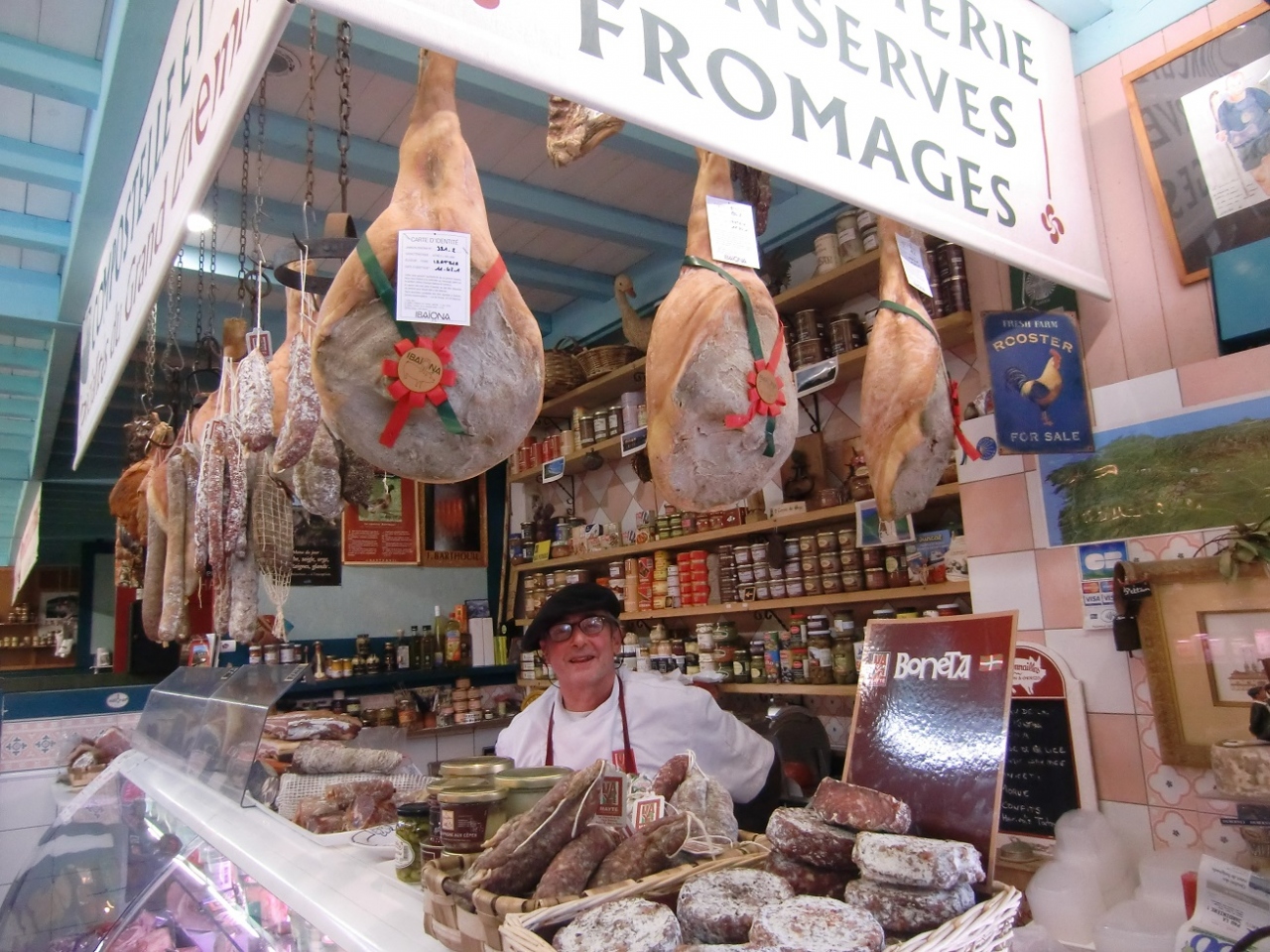 ブーシェリーのムッシュはとても愛想がよく、試食させてくれた生ハムは素晴らしく美味。