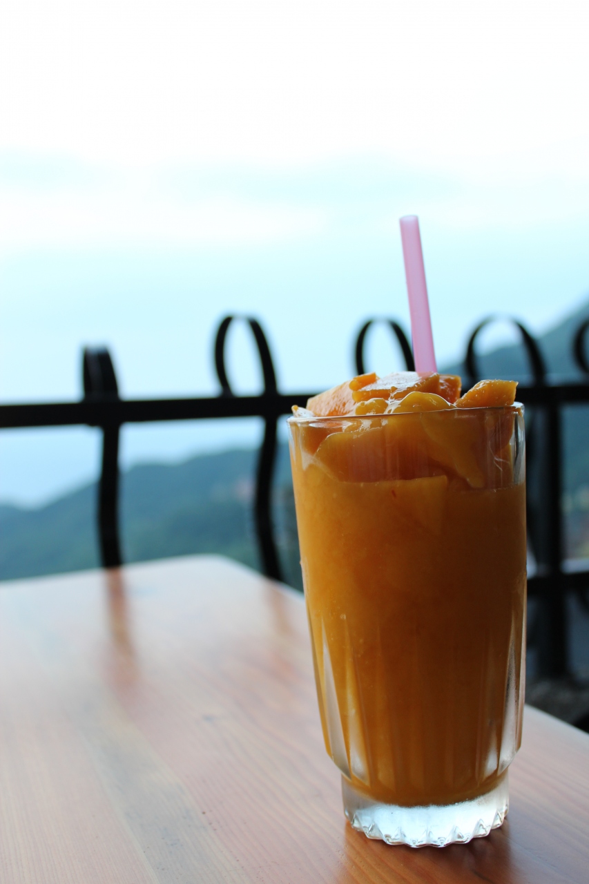 食事、カフェ利用などできます。ここから向かいの阿妹茶酒館の夜景がきれいに見えるということで夕暮れ時からテラス席でカフェ利用して、暗くなるのを待ち、夜景を見ました。夜景はとてもきれいで、おすすめスポットです。建物入口付近では夜景を撮影する人でごった返していました。