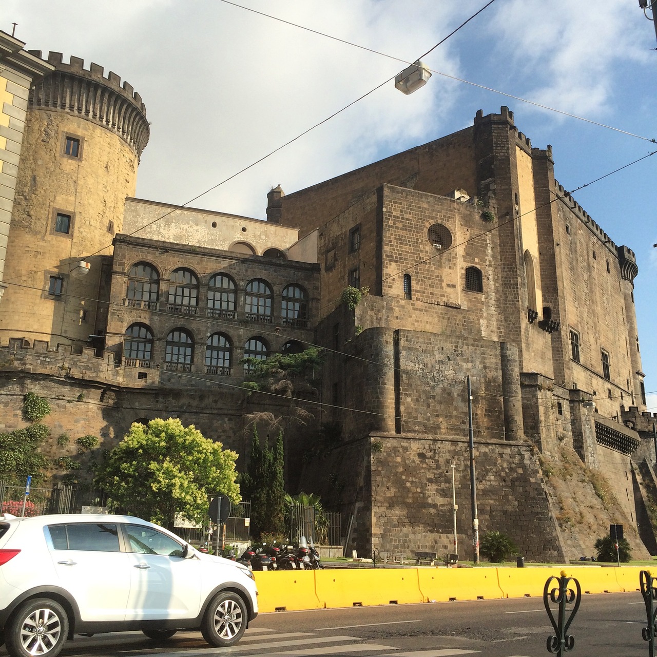 13世紀のアンジュー家の城を15世紀になってアラゴン家が再建した城です。「アンジュー家の城」とも呼ばれています。5つの円筒形の塔を持つ城壁に囲まれています。正面の二つ並んだ塔の間にある門は「凱旋門」でルネッサンス様式の傑作です。内部は市立博物館です。