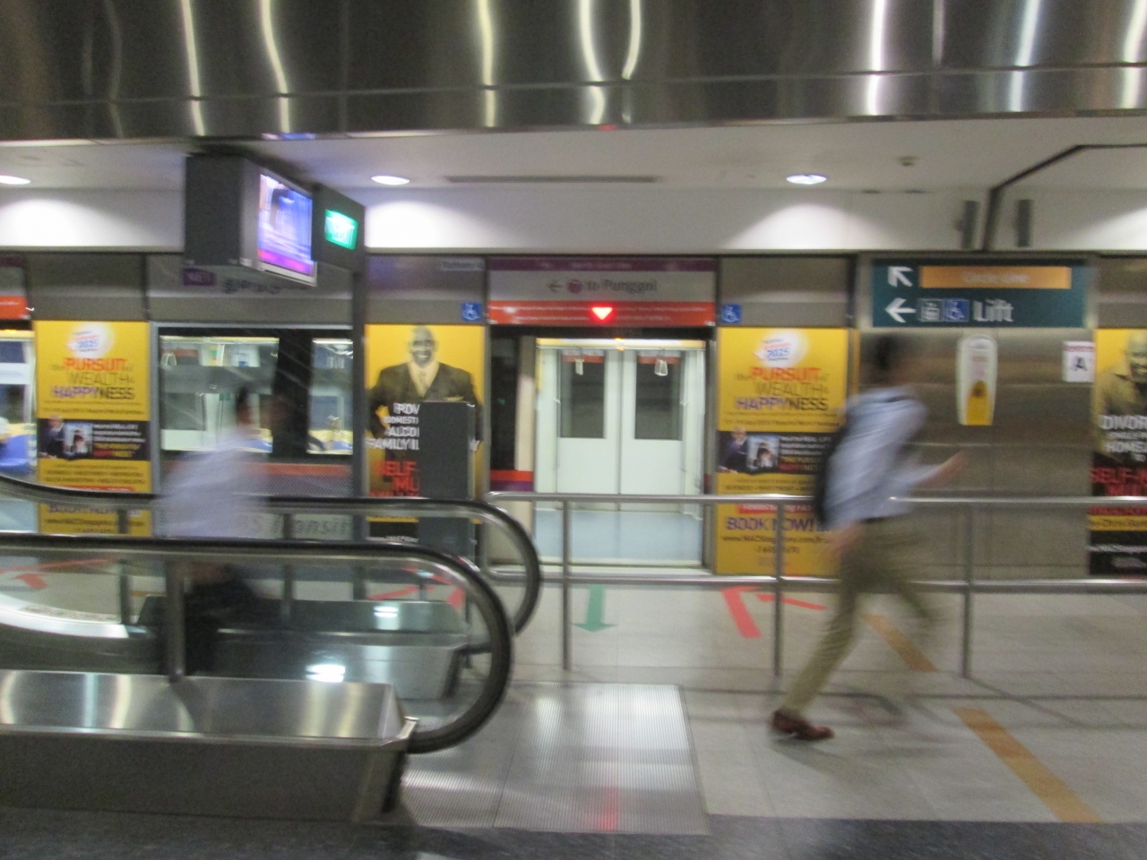 シンガポールの地下鉄駅のホームにはガラス製の安全柵が設置されています。各安全柵の上に赤いランプがあり、出発する際に点滅しアラーム音がなりますが、リモートコントロールで稼働していますので、駆け込み乗車は危険です。
