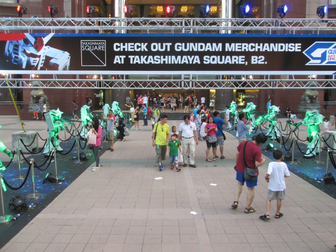 ガンダム35周年とシンガポール建国50周年を記念し、6/4から6/28まで大型イベント「Gundam Docks at Singapore」が開催されました。高島屋前の広場では全高6m程度のガンダムとザクが立っていました。週末の夕方はたくさんの人が訪問していました。