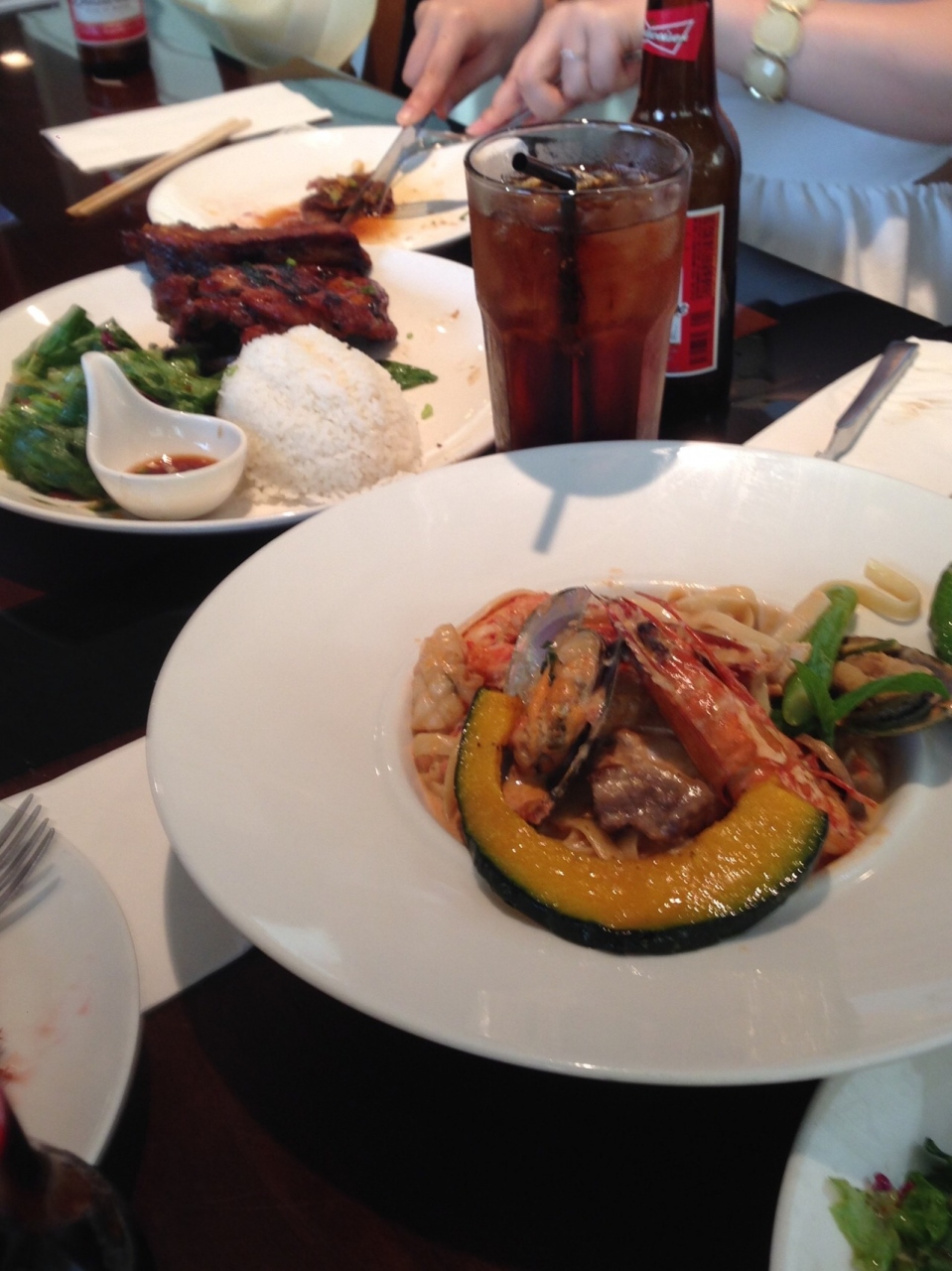 大人6人+子供1人でトリオバーベキュー✖?2、サラダ、パスタ、デザートなど頼みました。