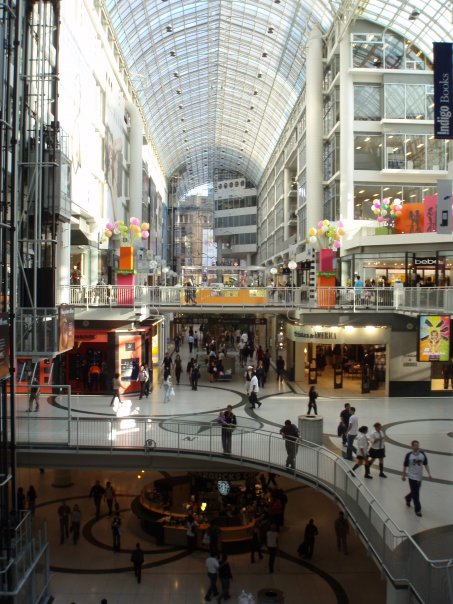 ラグジュアリーブランド店、アメリカンアパレルやギャップをはじめ、たくさんの洋服店、雑貨屋さん、色々なお店が入っています。フードコートもあるので、お腹が空いたら気軽に食べられる場所もあります。ショッピング目的でなくても、建物全体も日本と少し違う雰囲気なので、面白いかもしれません。ダウンタウンにあってクイーンステーションから近いので、行きやすいです。