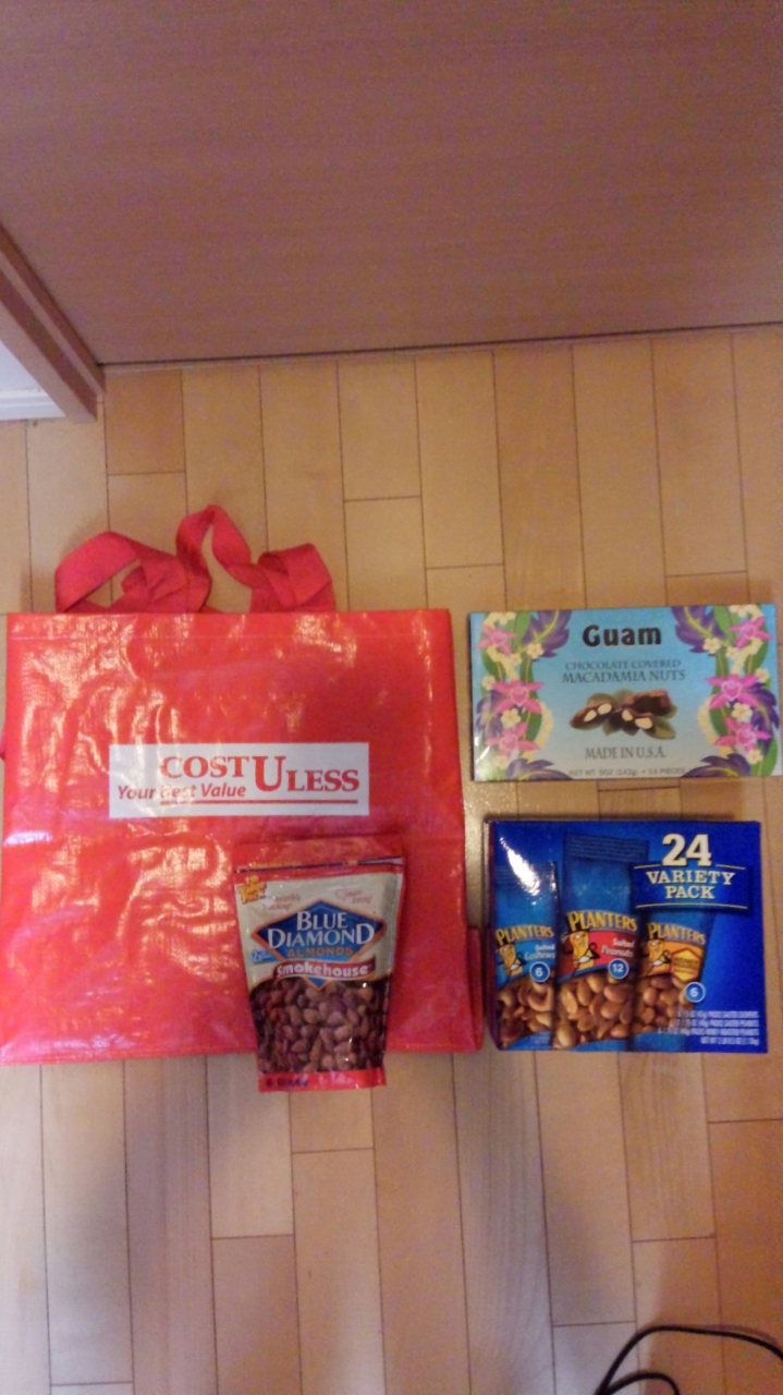 バラまきようのお土産は必ずコスチューレスで買います。ナッツやチョコやグミなどのお菓子系が安いです。コストコににてます。