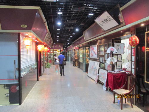 人経営の小さな店が沢山並んでいます。中国書画、玉石、古時計、陶磁器、石像、仏像、象牙、特に切手、古紙幣、古銭のコーナーが目を引きました。この地域には他にも古玩市場が幾つか集まっています。値段は交渉次第なのですが見る目が無いと価値も見分けられず、値切ようがありません。偽物も多いと聞いていますので素人は手を出さないで下さい。