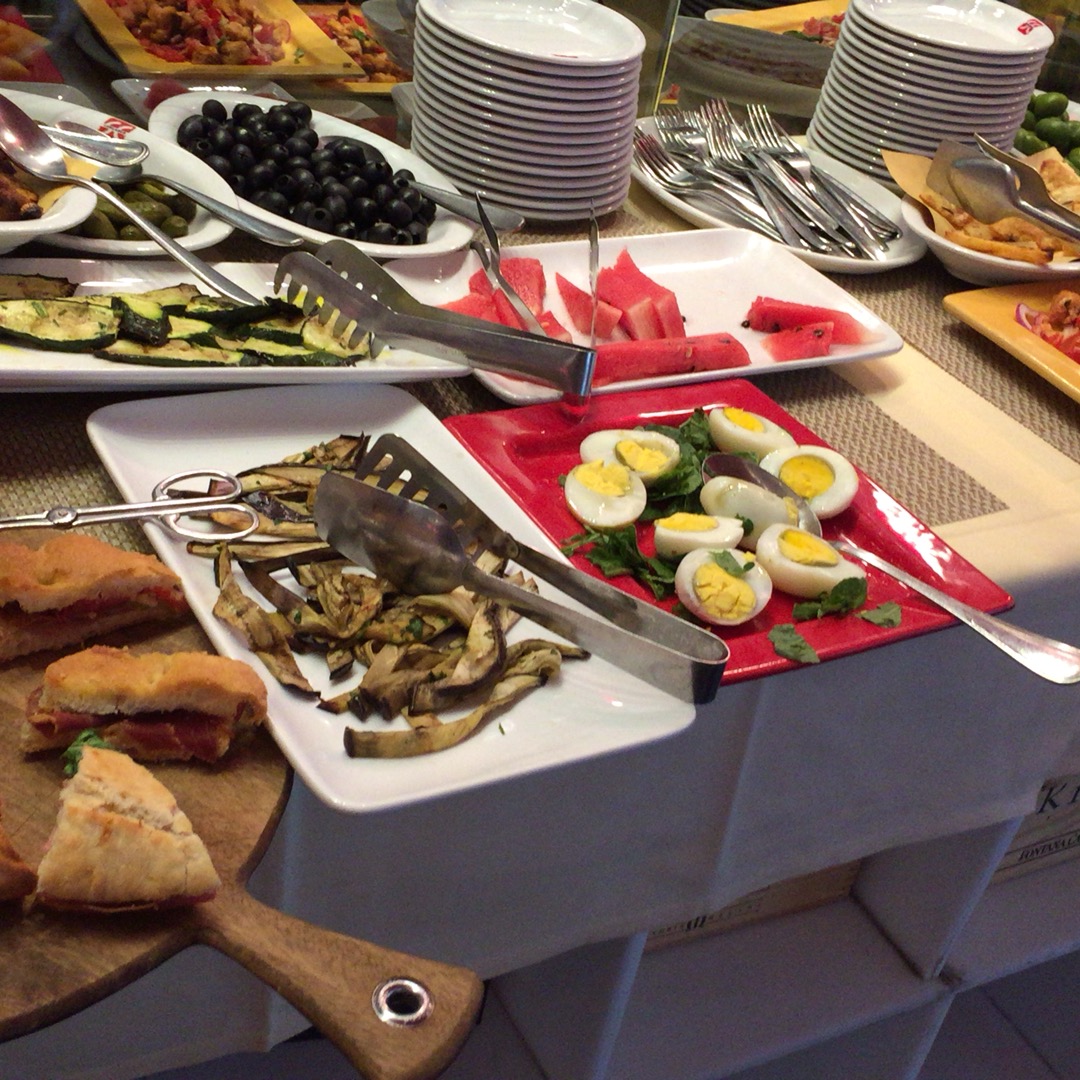 カウンターに並ぶ軽食が食べ放題なカフェやバールがあります。