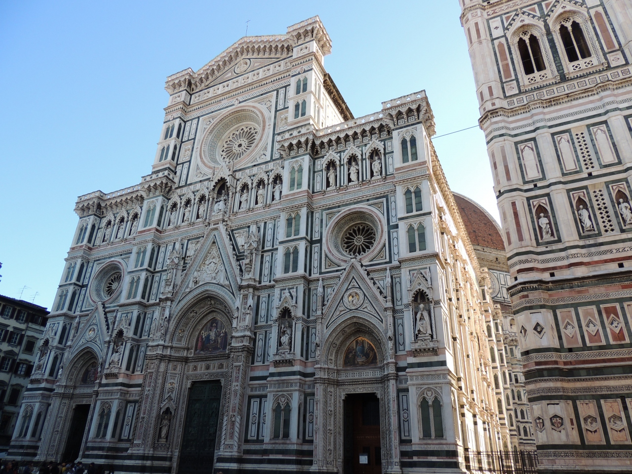 サンタ マリア ノヴェッラ駅から歩いて10分位。シニョーリア広場から6~7分位。壁が白とピンクと緑ですが、これがすべて大理石というからびっくり。兎に角デカイ。残念ながらちょうど工事中でいい写真は撮れませんでした。