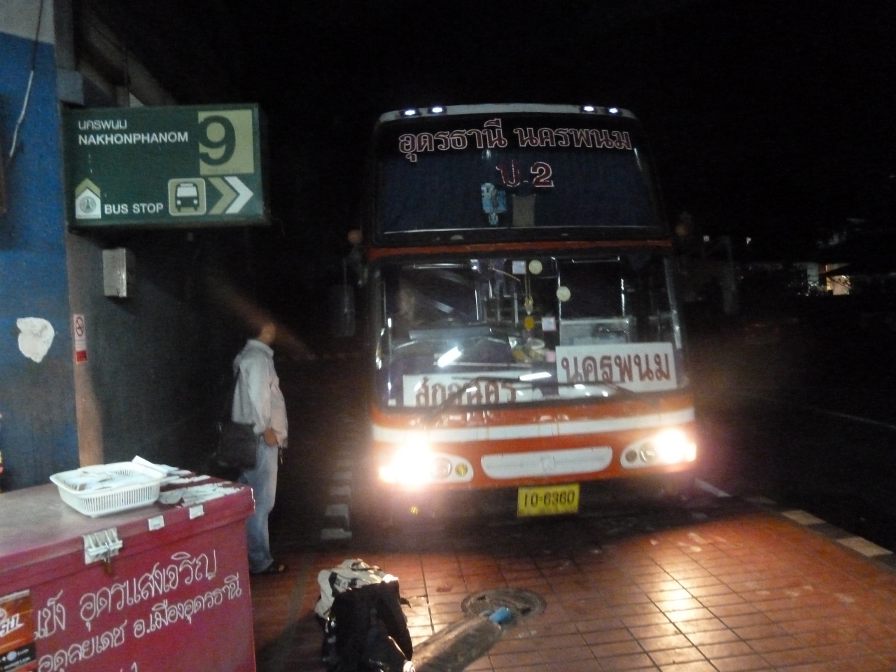 駅前にある。ここから、ヴィエンチャン、ナコンパノムなどの長距離バスも出ている。ナコンパノム行きのバスに乗ったが、時間通りこないし、チケットの販売もわからないしさんざん。トイレは、有料。トイレ前のおじさんに5バーツ払う。