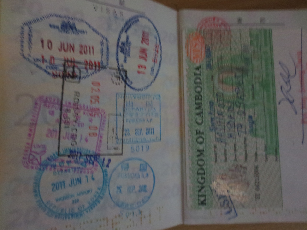 入国審査の係官は、適当にスタンプ押しまくりの状態で、5年ほど前のカンボジアに行った時のスタンプの上あたりに重ね押しで入国スタンプが押してありました。
