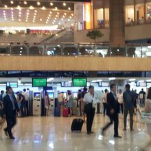 出国チェックインカウンターは二階。とてもこじんまりとして店もないので、