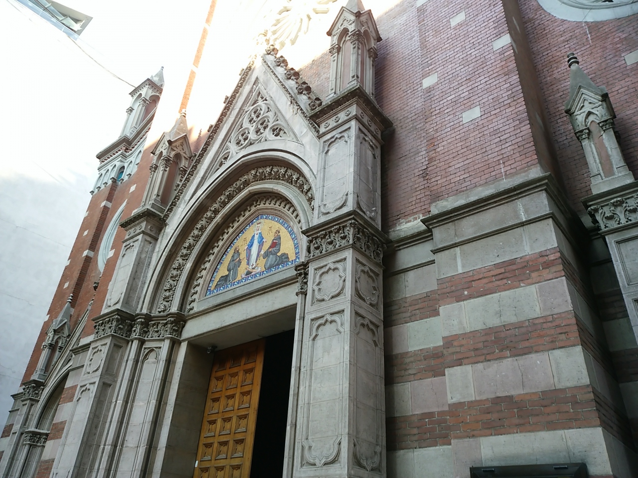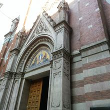 小さな中庭があって、すぐに赤いレンガ色の教会の外観が目に入ってきました。