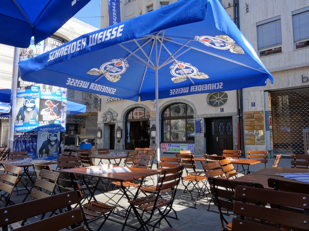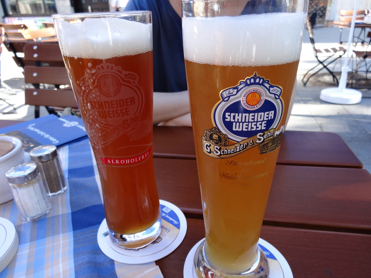 天気が良かったのでテラス席で、白ソーセージ5本、白ビール、ノンアルコールビールを注文しました。