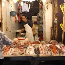 ガイドブックには、市場の中をトラムが走ると書いてありました。
