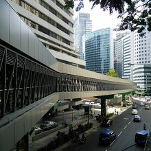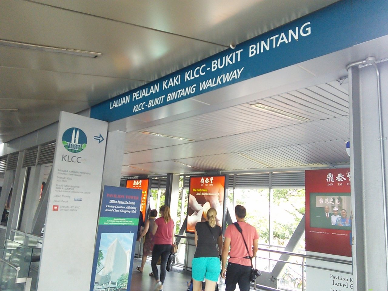 ブキッビンタンとKLCCとを結ぶ空中歩道です。ブキッビンタン側はパビリオンの正面に向かって左方向へアーケードのような通路を進んで行った先に入口があります。渡り廊下のような造りで一応エアコンも効いているので歩きやすいです。途中いくつか分岐がありますがしっかり案内表示があるので迷う心配はありません。道路を横断しなくていいし日差しも防げるので楽なのですが街並みがよく見えないのが残念。窓はありますが十分でないし天井部分から外が見えるようなれば言うことないんですが…。