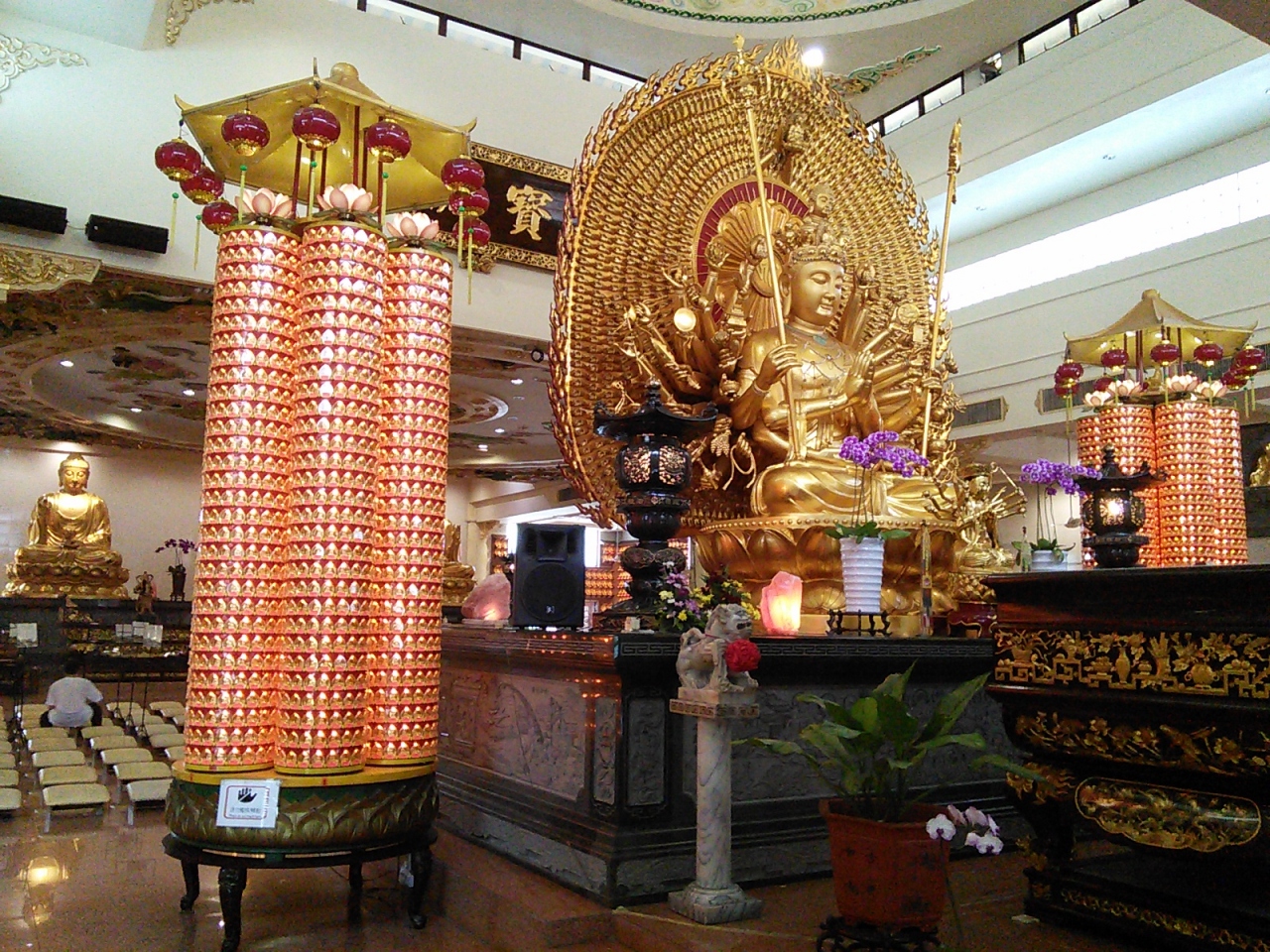 KLCC近くのアンパン通り沿いにある色鮮やかな装飾が美しい中国寺院です。建物内には金色に輝く巨大な千手観音像、その他多くの像が祀られています。どれほど有名な寺院かはわかりませんが大型観光バス乗り付けたインド系団体観光客が物凄い勢いで写真を撮っていました。