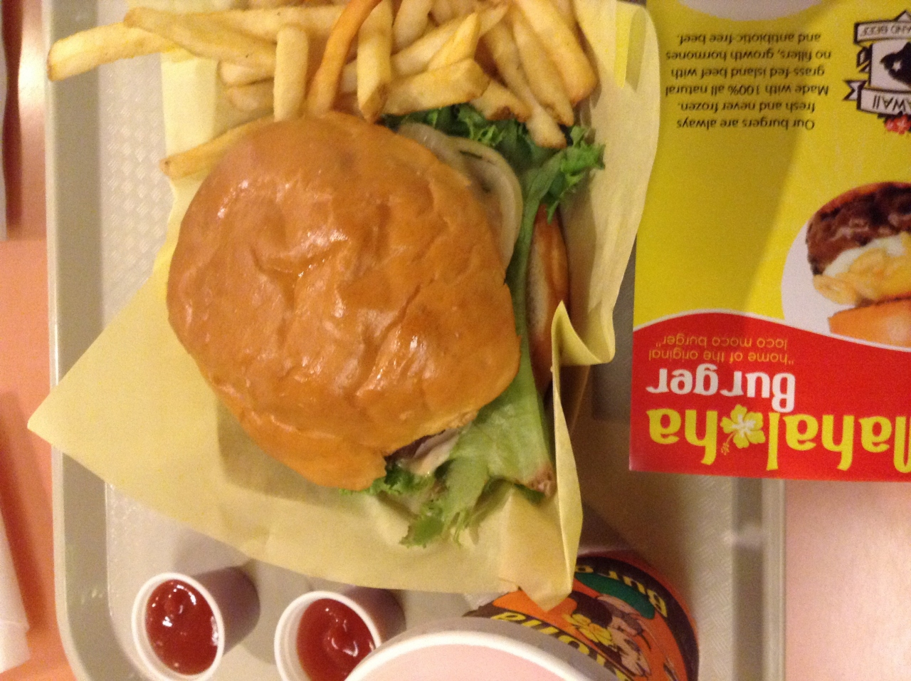 ホノルル、ワイキキのロイヤルハワイアンショッピングセンターの中にあるハンバーガー店です。2階のフードコートの中に入っています。注文すると、呼び出しの機械を渡されるので、ブルブル振動が来るのを待ちます。ハンバーガーのコンボ(ポテトとドリンク付き)にして10ドルちょっとです。美味しいですが、割高の気もします。