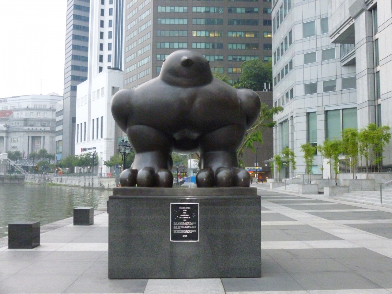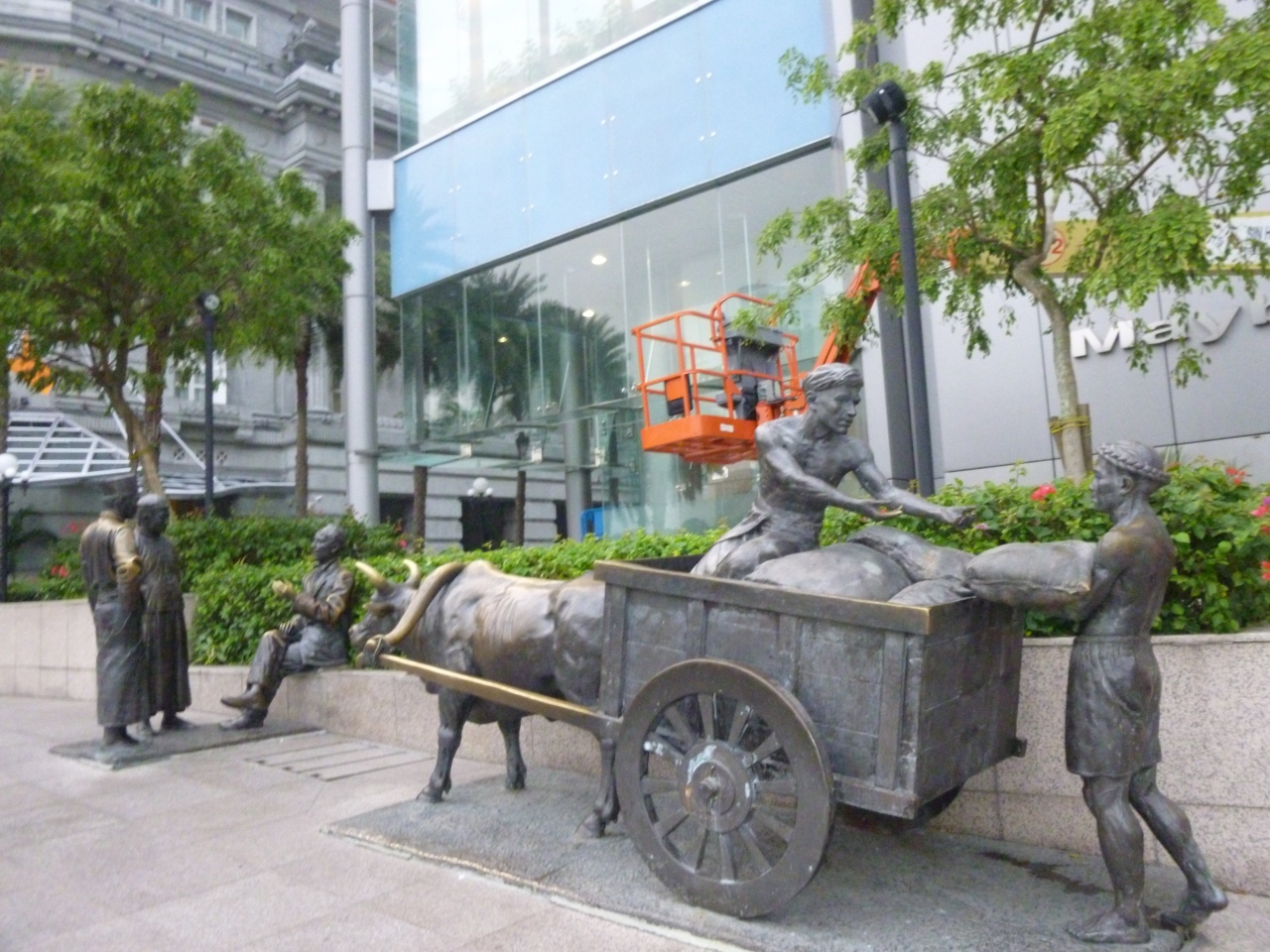 シンガポール川のリバークルーズ遊覧時や、フラトン・ホテルから、ボート・キーまで歩く川沿いに、銅?彫刻が点在して、子供が今にも川に飛び込む姿の像や、チャイナ風の荷車引き像等々、写実的に、ユーモラスに何ヶ所かあり、一興です。