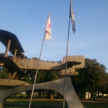 川沿いの芝生に年代物の飛行機が飾ってありました。