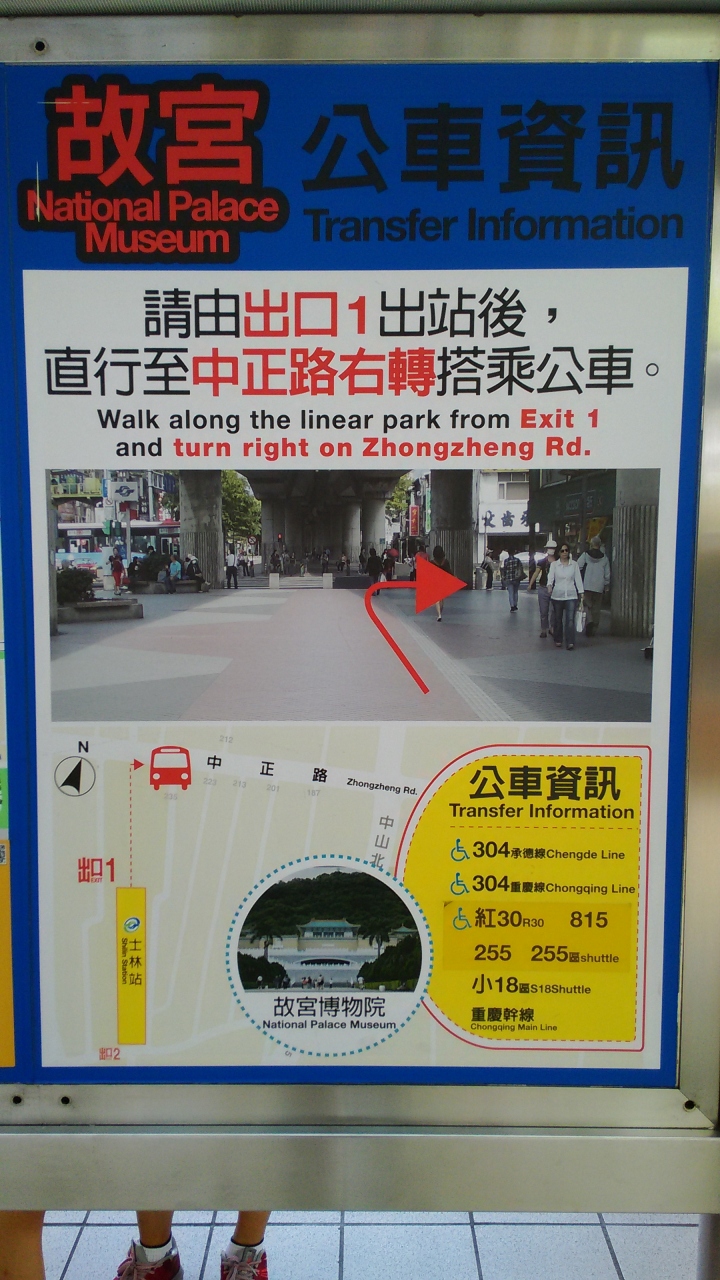 MRT士林駅下車、紅30バスに乗り換え15分ほど。(士林駅の改札を出てすぐにバス停の案内看板があります)