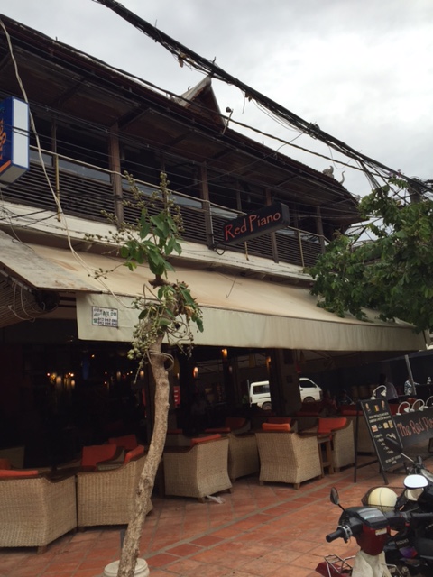 どうしてもトゥームレーダのカクテルが飲みたくて晩御飯のあと、一杯だけ飲みに行きました。おすすめは2階席。アンジーがよく座っているのは、階段登って左の一番左奥。10杯に1杯は無料になるんですよ。残念ながら有料でしたが、カクテルは柑橘系でさっぱりとしていて飲みやすかったです。また、下を眺めながらカンボジアの夜の雰囲気浸れます。あとは、トイレが涼しかったです。