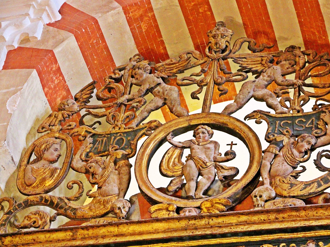 メスキータのアーチに合わせて加工してあるゴシック建築の壁の模様、その精巧な彫刻や絵画は荘厳だ。