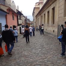 プラハ城の見学コースの通りに進んでいくと、聖イジー教会のさらに奥に小道に挟まれた通りがある。両側には小さな間口の小さなカラフルな家々が並んでる。