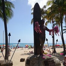 ハワイ人初のオリンピックの金メダリストで、「近代サーフィンの父」と呼ばれたハワイの英雄です。ワイキキビーチを背に建ち、レイもたくさんかけられている銅像を前に、記念撮影をする人も多くハワイに来たんたど気持ちが盛り上がる存在です。