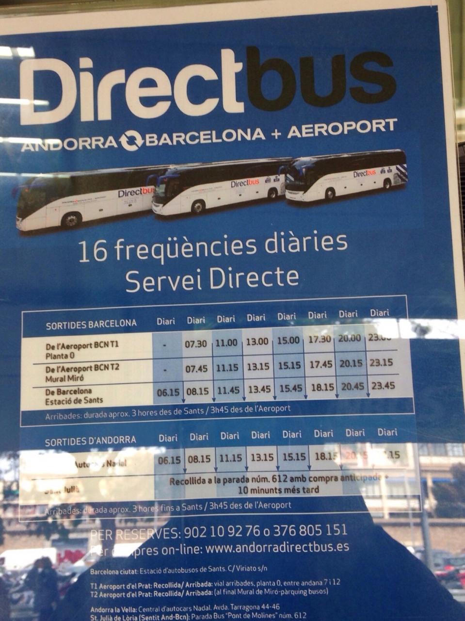 アンドラ行きのバスを運行している会社は、スペイン最大手のALSA・NOVATEL、DIRECTBUSの三社。時間帯で選ぶと良いとおもいます。
