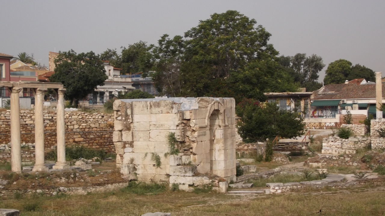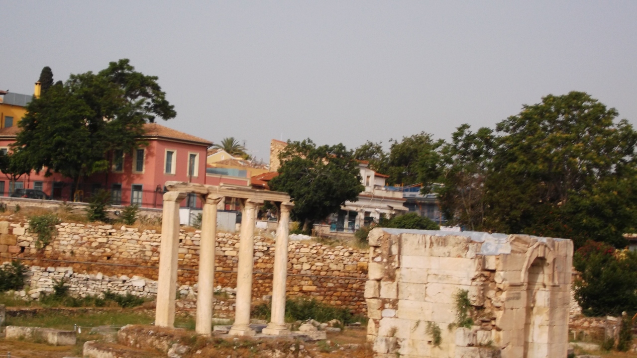 広い敷地の中に石柱や、遺跡の一部が見られます。