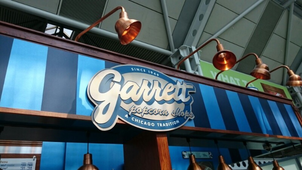 シカゴのオヘア空港の店舗でキャラメルとチーズのミックスをオーダー。並びは4,5人ですぐに買うことができました。
