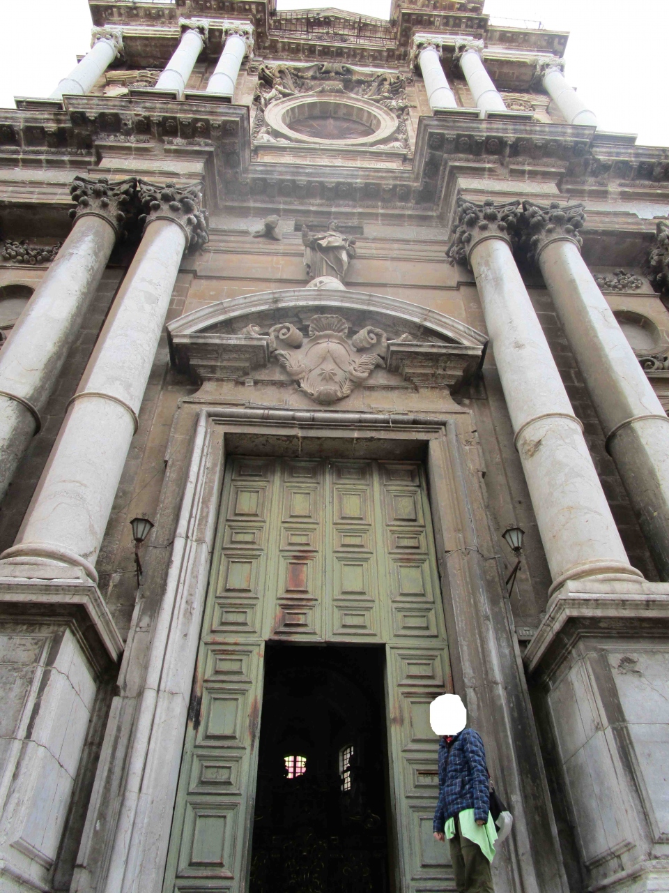 この教会もちょっとデザインが変わっていて、入り口に重厚な柱が6本建てられています。教会の中って、薄暗いイメージを持ってましたが、この教会は違いました。