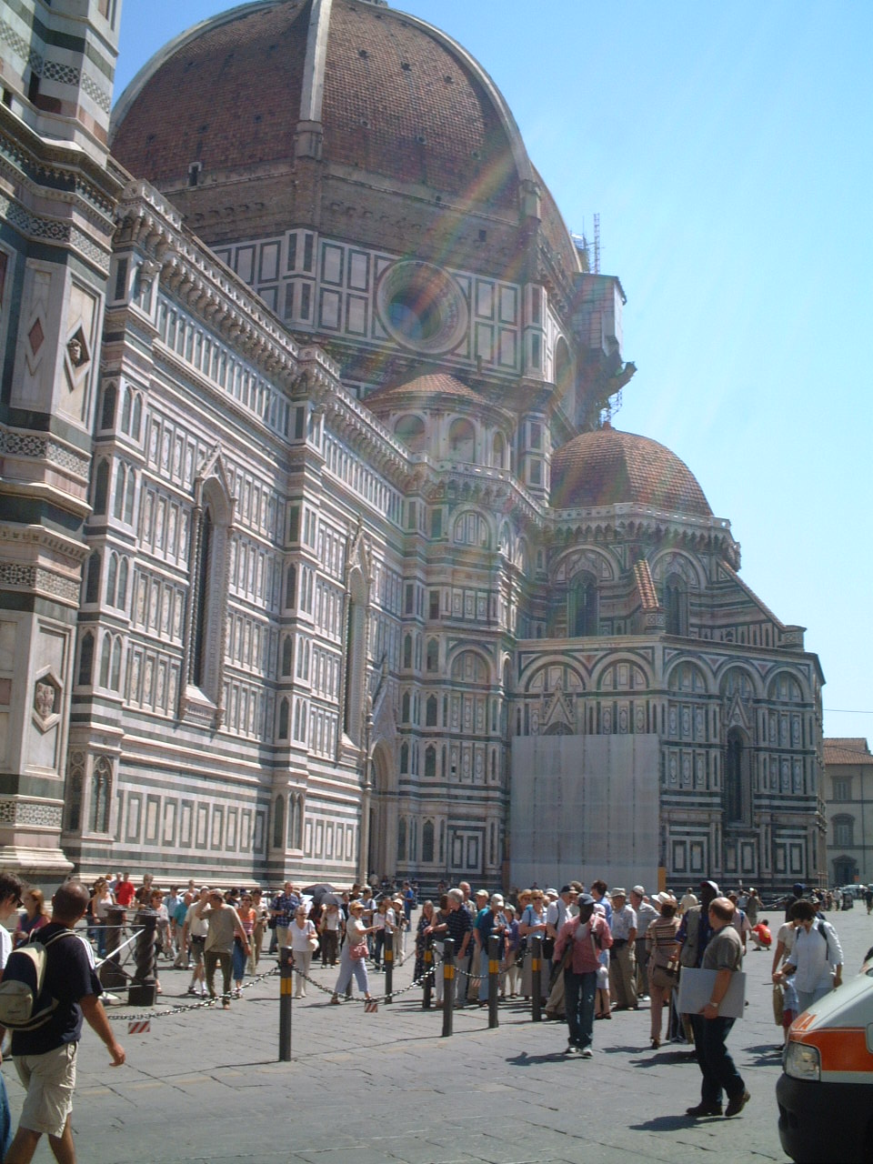 フィレンツェ歴史地区の中心で、どこからでも望める。色彩豊かな大聖堂で他の地区の大聖堂などと比べても異彩を放っていて、必見です。今回は天井に上って、天井画などを鑑賞してみましたが観光客が多いわりには、階段が狭く大変でした。