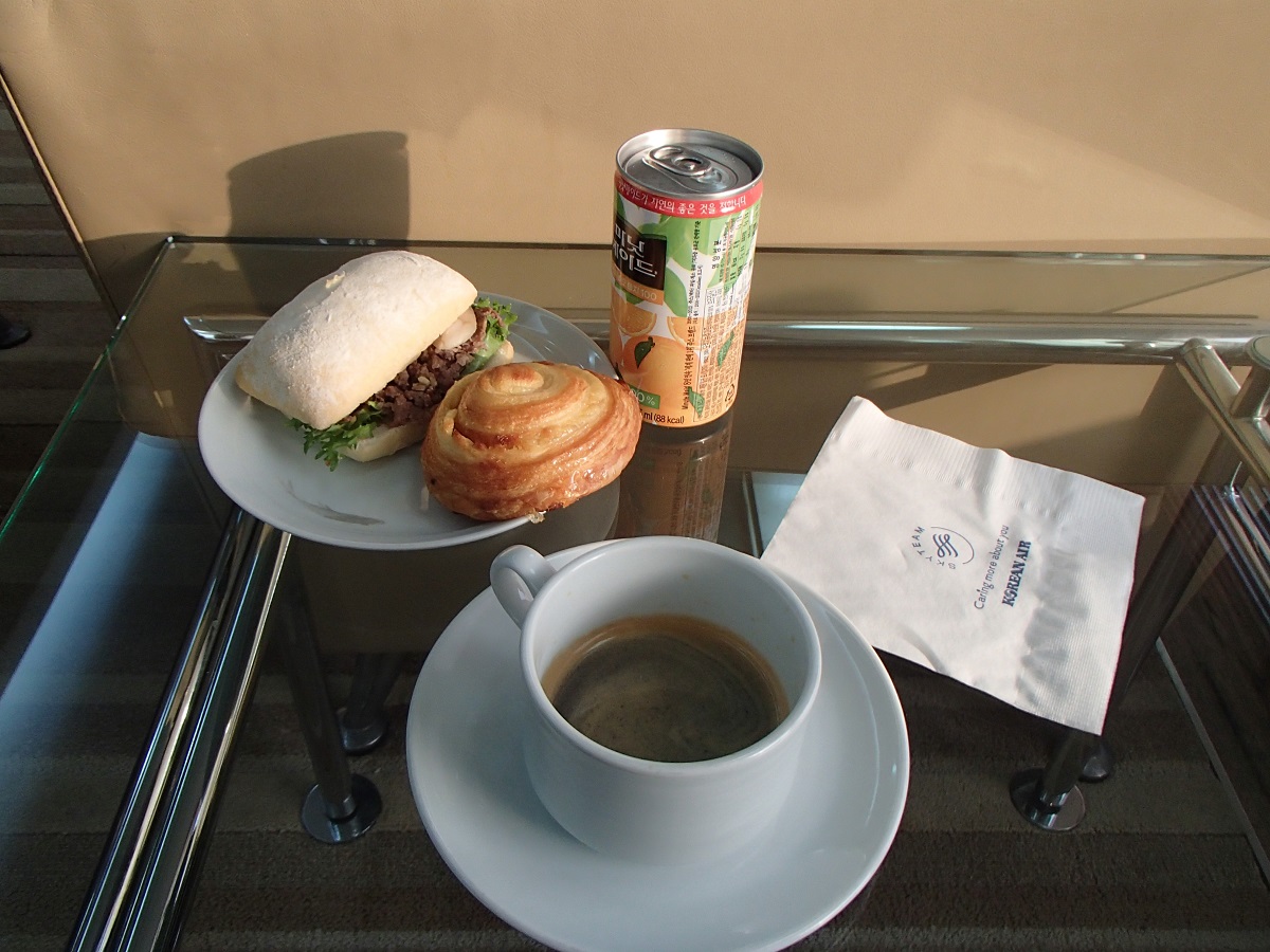 食べ物は韓国の空港によくあるプルコギサンドか辛ラーメン程度で、スーツ姿の韓国人ビジネスマンもラーメンを食べていました。