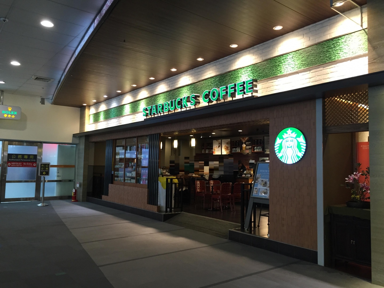 台北松山空港の2F出国ゲート前に春水堂と並んでいるのがこちらのスタバ。