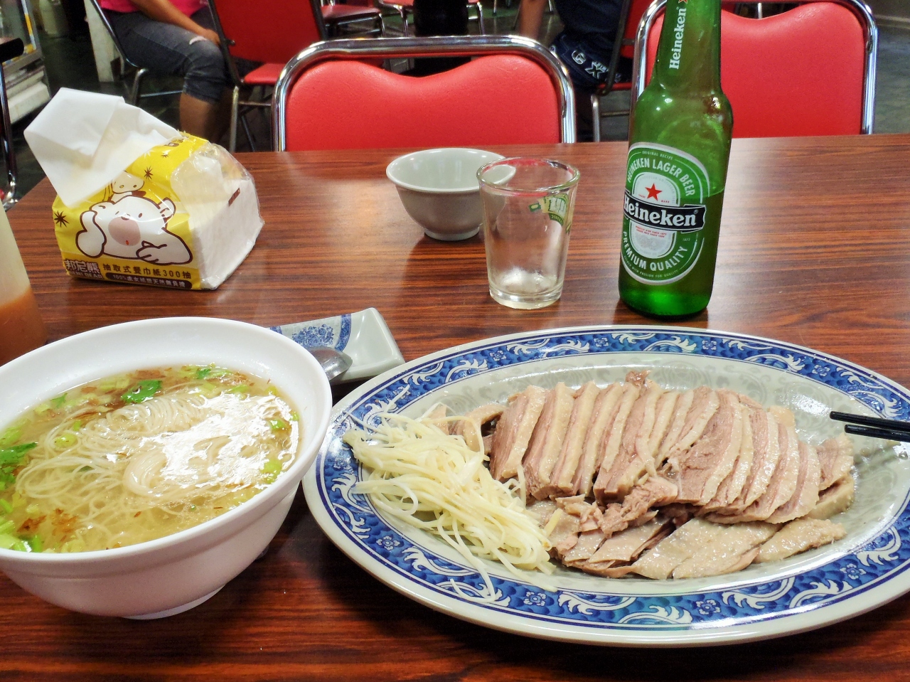 1/4サイズの鵝肉(塩味の蒸鵝肉)と鵝肉スープの湯麺、ビール1本で410元(約1,640円)でした。どれもとてもおいしかったです。