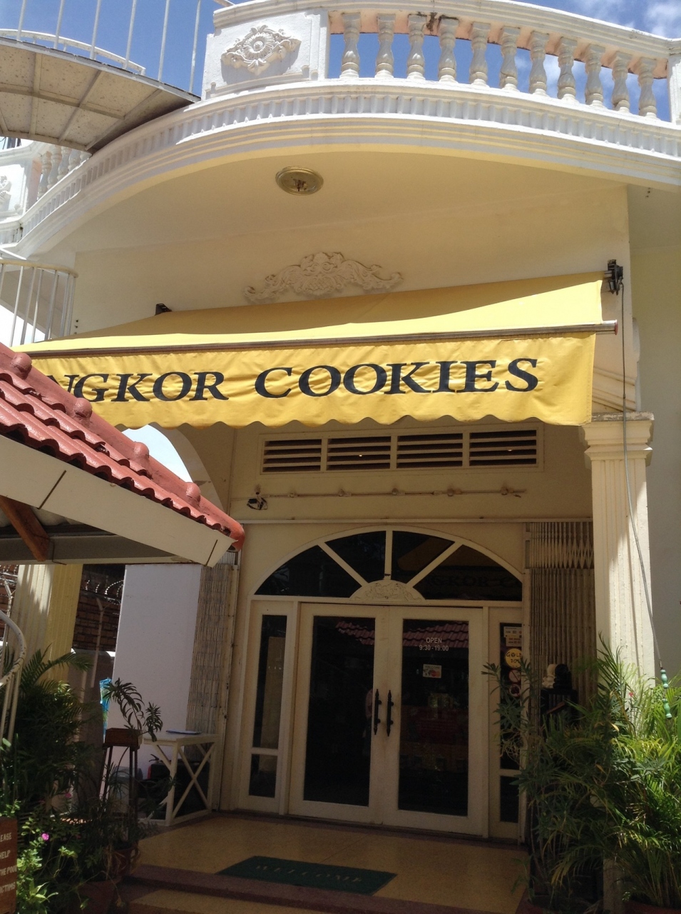 アンコールワットの形をしたクッキーが20枚入りで10ドルと割高です。日本のお土産屋さんでも、そのくらいなのに、カンボジアの物価からすると、とっても高いと思います。