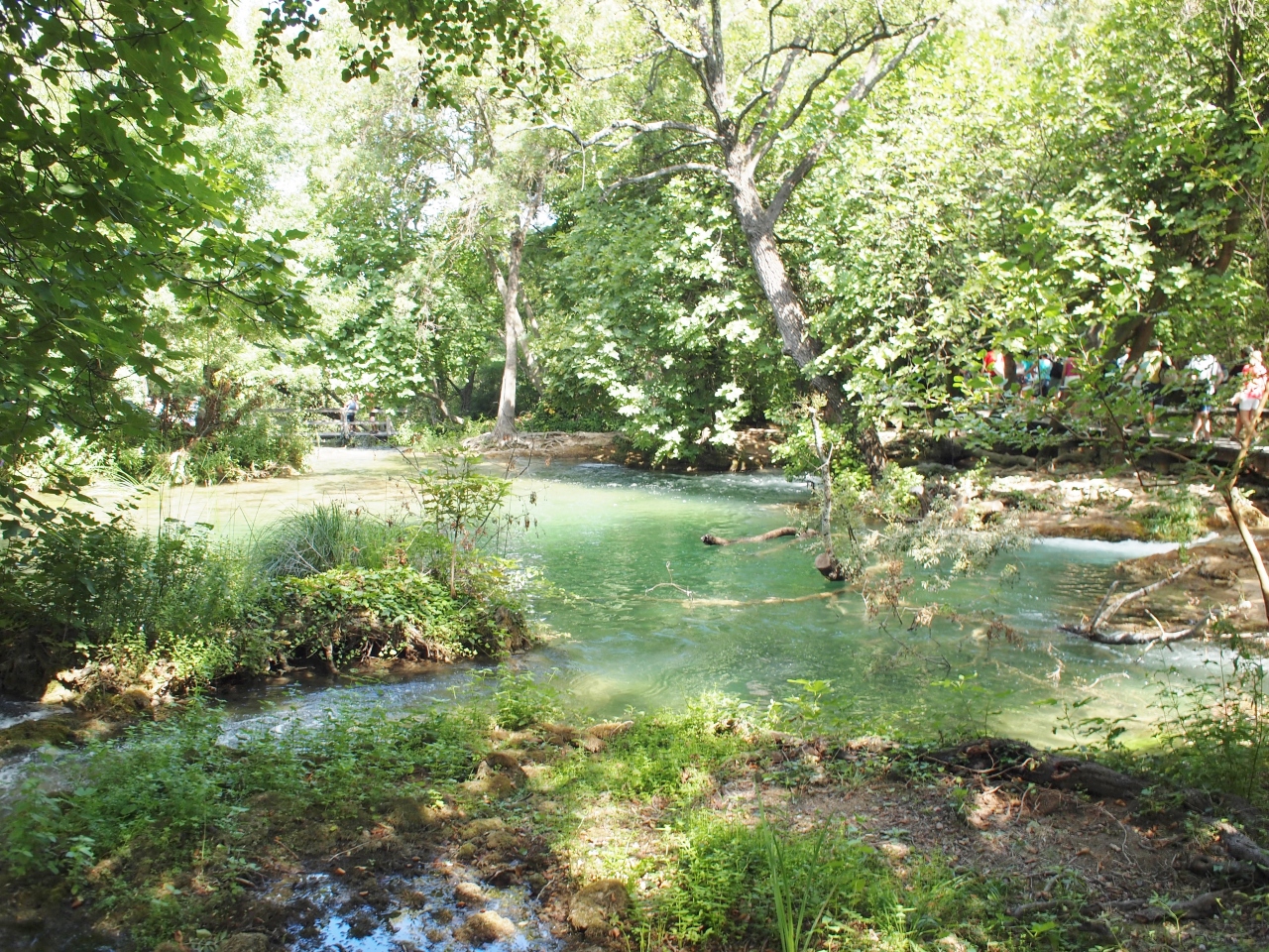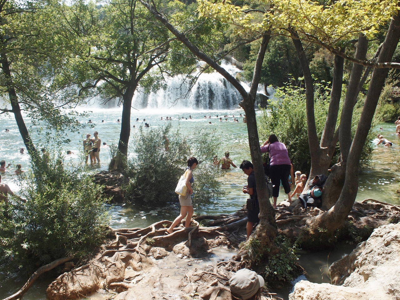広い国立公園には遊歩道が整備され、緑の木々と小川、そして滝が美しいです。滝は見るだけではなく、滝壺に入って泳ぐことも出来ますが、滝壺にはいる場所の足場が悪く、私達は泳ぐのを断念しました。湖に浮かぶ小島に修道院があったりと、見所がたくさんありました。