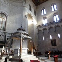 一番奥の祭壇に丁度、聖ニコラに西日が当たり、神秘的な光景。