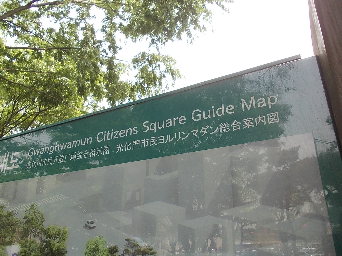周辺は高層オフィス街なので、光化門に向かって開けた公園はすがすがしい緑の木陰でくつろぐビジネスマンがたくさんいました。オフィスビルにはスターバックスなどのカフェチェーンがいくつかあって、そこで買ってきたコーヒーを飲んでいる人も多かったです。