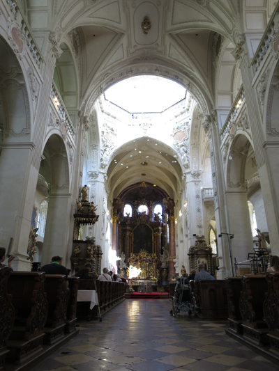 17時からのオルガンコンサートを聴きに行きました。ぎりぎり5分前に行ったら、こちらから頼んでもいないのに一番安い500チェココルナの席を400チェココルナ(約2000円)にまけてくれました。コンサートはオルガンの他にバイオリンと声楽で、約1時間位です。